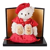 《2014年版》[還暦に贈る、干支のメモリアルべア] 赤いちゃんちゃんこ着用 干支のマーク入り 還暦祝い 退職祝い 誕生日プレゼント 敬老の日 人気 人気ランキング おばあちゃん おじいちゃん 還暦べア 金屏風付き (ラッピング付き)