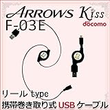 ARROWS kiss F-03E 巻き取り式-携帯用USBケーブル A-microB(アローズ キッス f03e FUJITSU JILL STUART ジルスチュアート ドコモ 充電 通信)