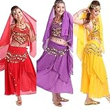 プロ仕様!ベリーダンス 衣装4点セット ブラトップ ヒップスカーフ ヒップスカート ベール
