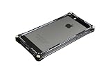 多くのケースが背面を隠してしまう中、このGuild design のバンパーはiPhoneの美しい背面を隠さずに済む。バンパーは前面側と背面側で色が異なる。前面はメタリック、背面は黒。前面のメタリックな色が画面の淵を際立たせている。自分のiPhoneのカラーは黒で、背面側のバンパーの色とiPhone背面の銀色がいいコントラストになっている。総じて見栄えがよく、他のEVAカラーのGuild designバンパーよりも落ち着いた配色で好ましい。メタリックの色感はゲーム中のメタルギアRayやサイボーグ忍者を想起させる配色になっており、メタルギアファンとしてもうれしい。バンパーにプリントされた英単語も、プラモデルのデカールのようにメカメカしくてgood。