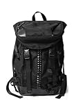 【MEMENTISM(メメントイズム・メメンティズム)】レザー切り替え センターブラックスタッズリュック バックパック"THE WORLD"/BLACK