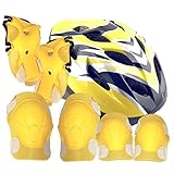 【対象 6~18才】 子供 ジュニア 用 自転車 スポーツ ヘルメット & プロテクター 7点 セット サイズ調整アジャスター付き (黄)